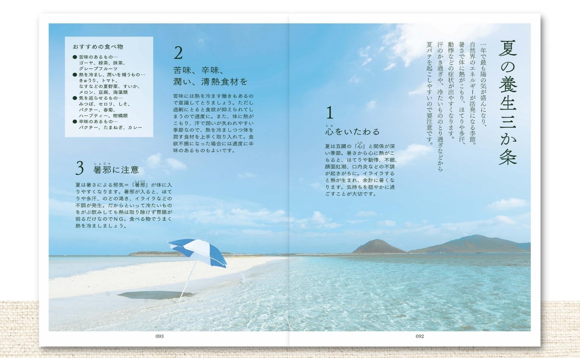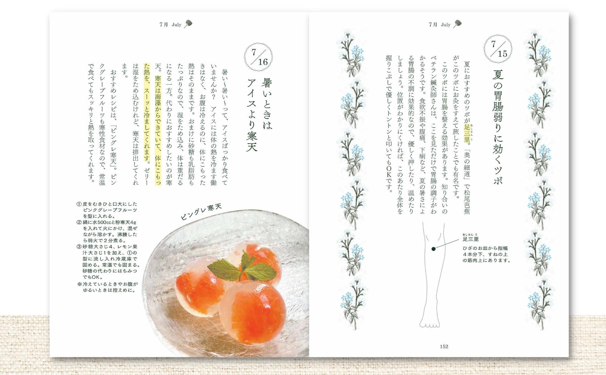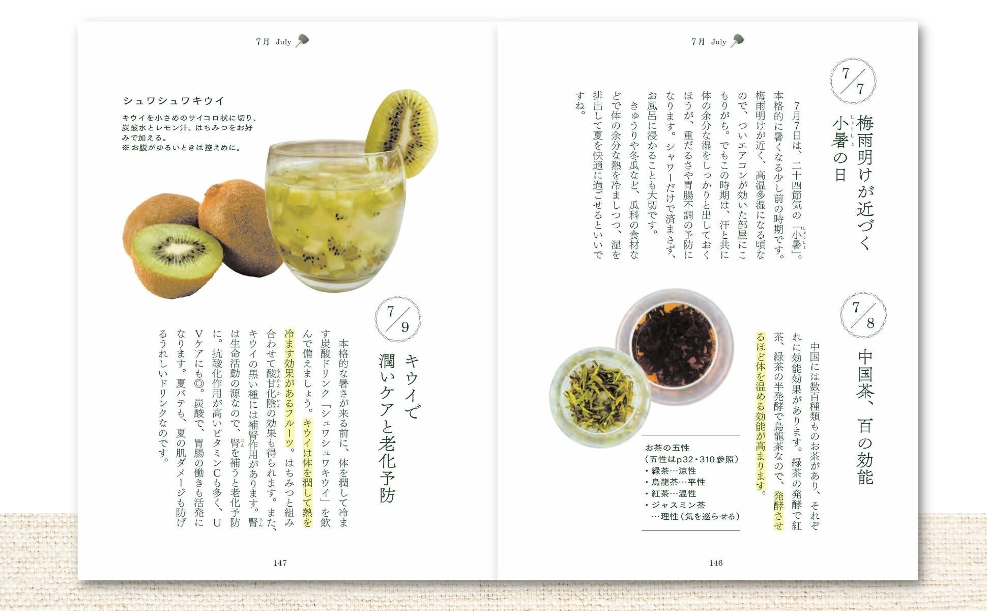 本書では、1日1テーマ・365日、やさしい文章と分かりやすいイラストで、あなたの毎日に寄り添う漢方アドバイスをお届けします。忙しい毎日でも、漢方の知識がなくても、大丈夫。身近な食材でカンタンに作れる「養生レシピ」113点、今すぐ実践できる「セルフケア」のアイデア252点、1日ひとつ読むだけで、季節ごとの不調が整っていきますよ。