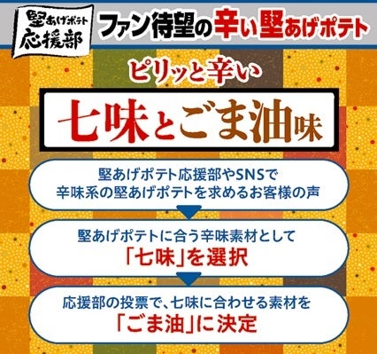 「堅あげポテト応援部」の投票で選ばれたピリッと辛い七味と香ばしいごま油の風味が楽しめる『堅あげポテト 七味とごま油味』