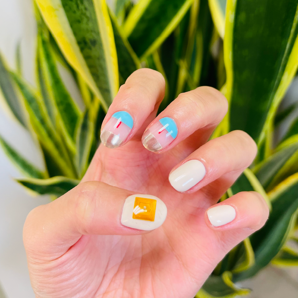 3.チップを置きジェルネイルやマニキュアまたは、ネイルシールで固定し完成です。