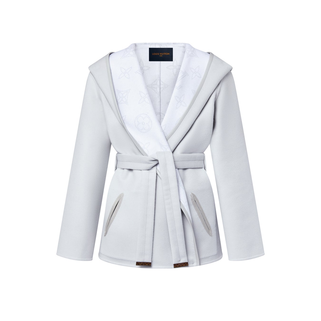ショート丈のフード付きラップコート。エレガントな今シーズンならではの色使いで仕上げたラグジュアリーなダブルフェイスのウール & シルク混紡素材にトーナルなレザーのパイピングを施した、ルイ·ヴィトンの定番アイテムです。内側には繊細なシグネチャーを添える「フライト·モード」カプセル·コレクションならではのマヒナ·モノグラム モチーフを全体にあしらいました。2つのサイドポケットと揃いのベルトがスタイルを完成させます。