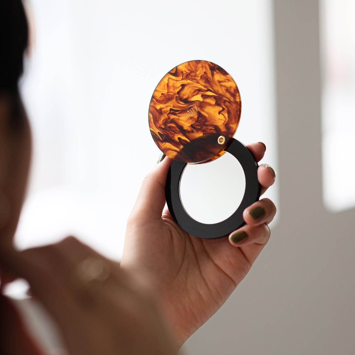 片手に収まるサイズの手鏡は、外出先での化粧直しやジュエリーをチェックする時にもちょうど良い!