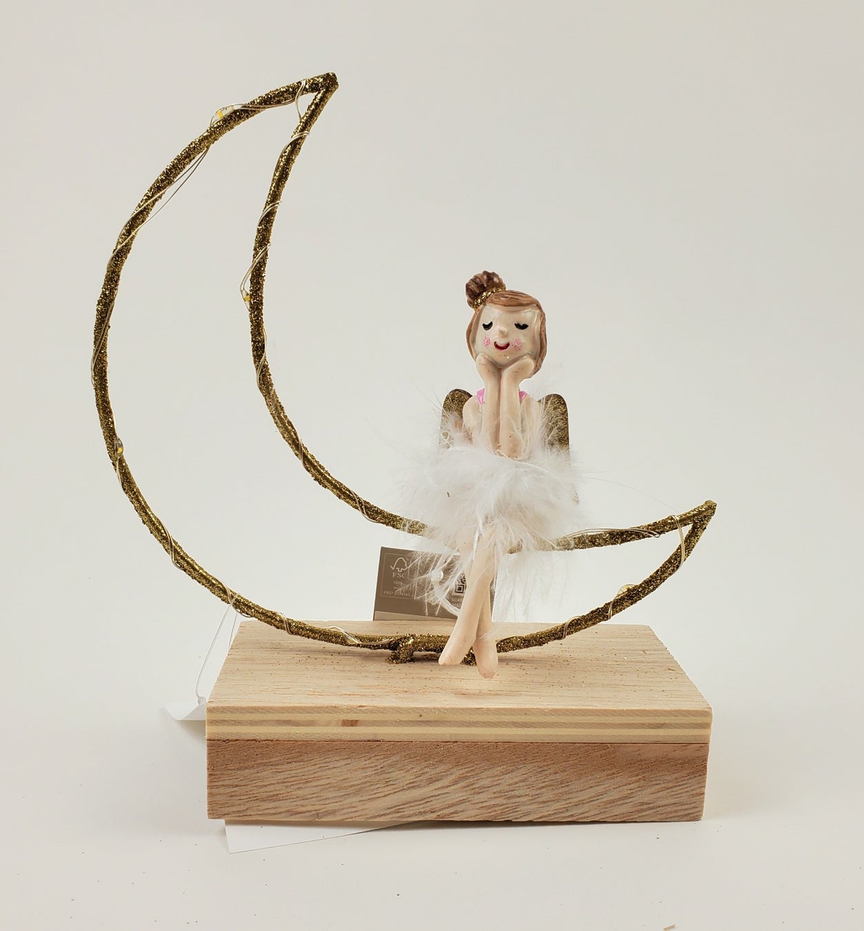 可愛らしい妖精が月に腰かけるデザインのライトつきデコール。