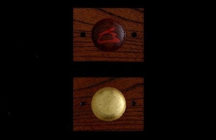 近江八景「堅田の落雁」で名高く、平安時代に湖上安全と衆生済度(しゅじょうさいど)を祈願して建立されたといわれる「浮御堂」の古材でつくられた香合。側面に波模様の蒔絵が施されています。