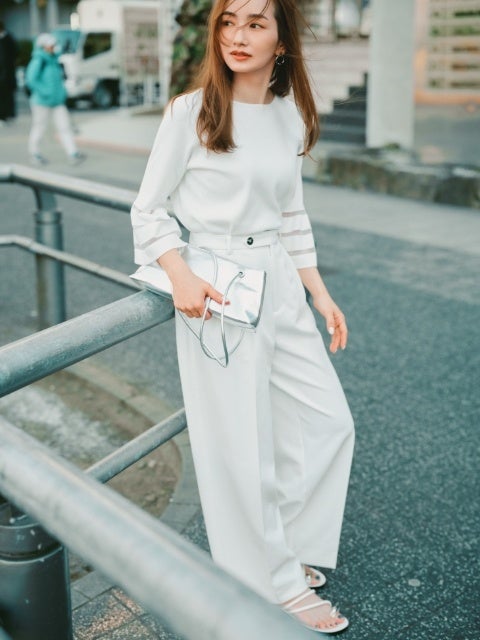 鉄板の白こそ、差がつくスタイルに!シアーボーダーのフレア袖で上品に華やぐ