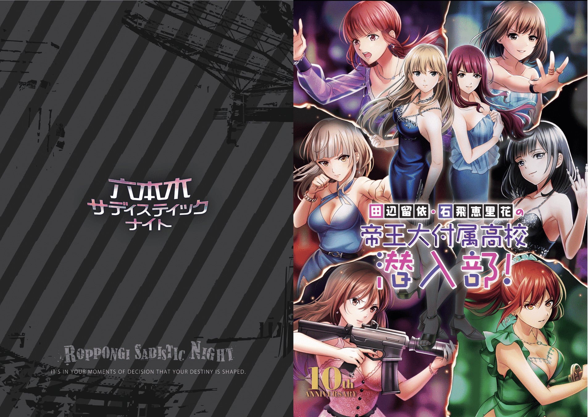 「六本木サディスティックナイト」は、六本木を舞台に美女だけで構成された“チーム”と一緒に事件に挑む、カード型サスペンスアプリです。2015年の配信開始以降、本能に訴えかけるストーリーや多彩なマルチエンディング、4,000枚を超える美麗なカードイラストが好評いただいており、多くのファンの方に支えられてこの度10周年を迎えました。