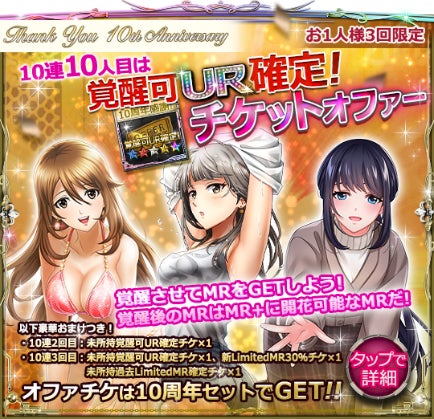 【10周年感謝!新LMRナツ/ユウキ/トウカ/キリカ含むMR全登場&確率10倍10連オファー 】