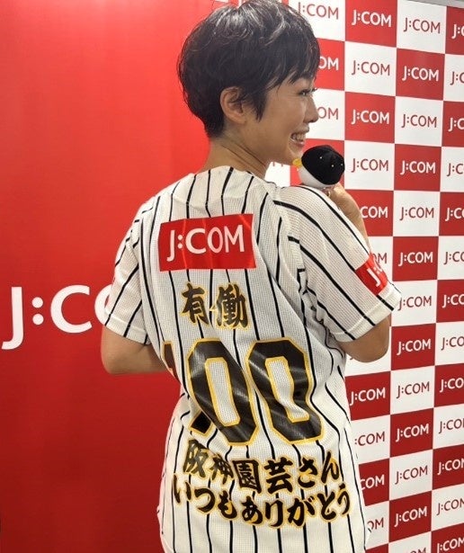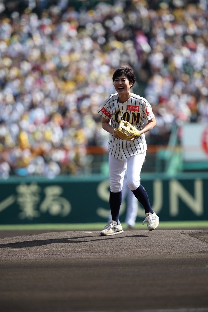 阪神甲子園球場で「J:COM 超速ネット光デー」開催“虎党”有働由美子さんが背番号「100」で始球式に再挑戦!「人生2回目の始球式は85点。ノーバウンド投球で前回より良い点数」