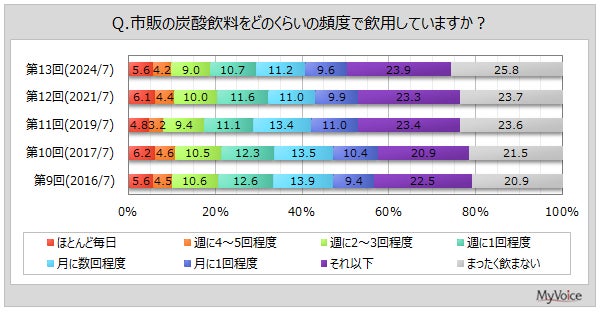 マイボイスコム株式会社(東京都千代田区、代表取締役社長:高井和久)は、13回目となる『炭酸飲料』に関するインターネット調査を2024年7月1日~7日に実施しました。