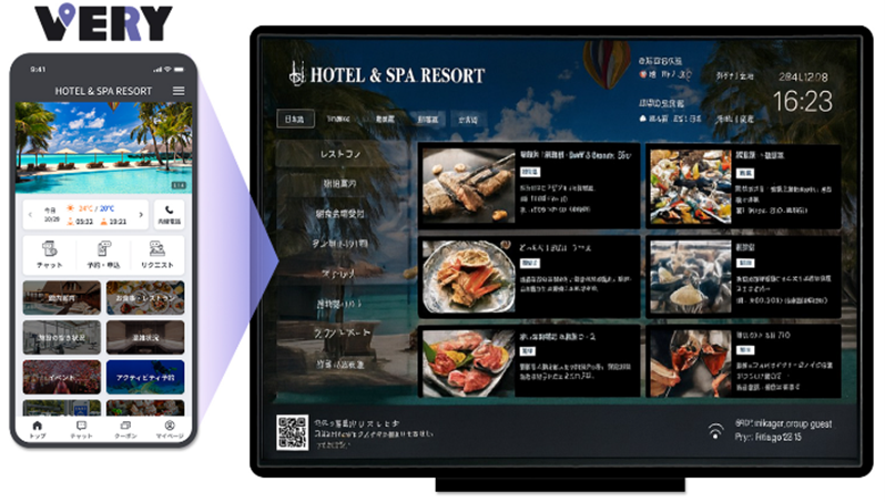 Kotozna In-room(※1)に加え、アクティバリューズが提供する旅マエから旅アトまでのデジタルソリューションを組み合わせ、宿泊事業者の運営高度化と旅行者の体験価値向上を支援します。また、テレビインフォメーションと「VERY(※2)」を連携した館内情報の一元化、ランドリー設備との連携による利用状況の可視化など、現場利便性とおもてなし品質を同時に高める取組みを推進します。