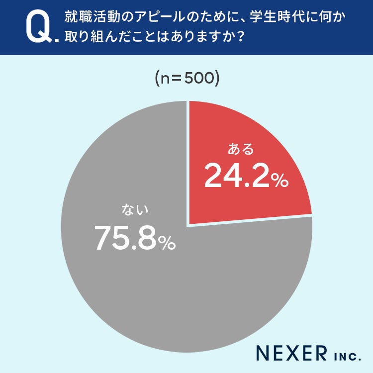■24.2%が、就職活動のアピールのため学生時代に何か取り組んだことが「ある」