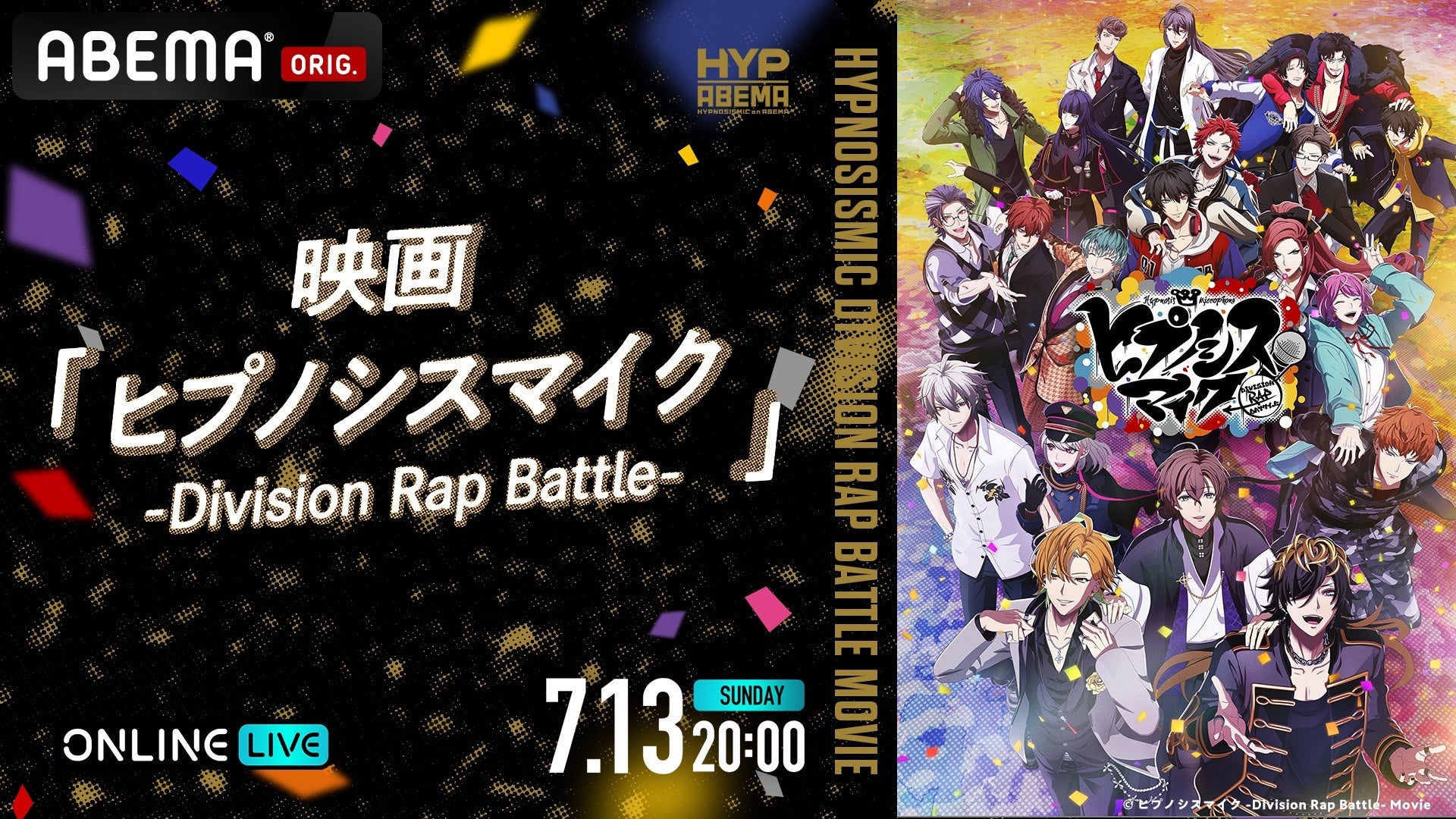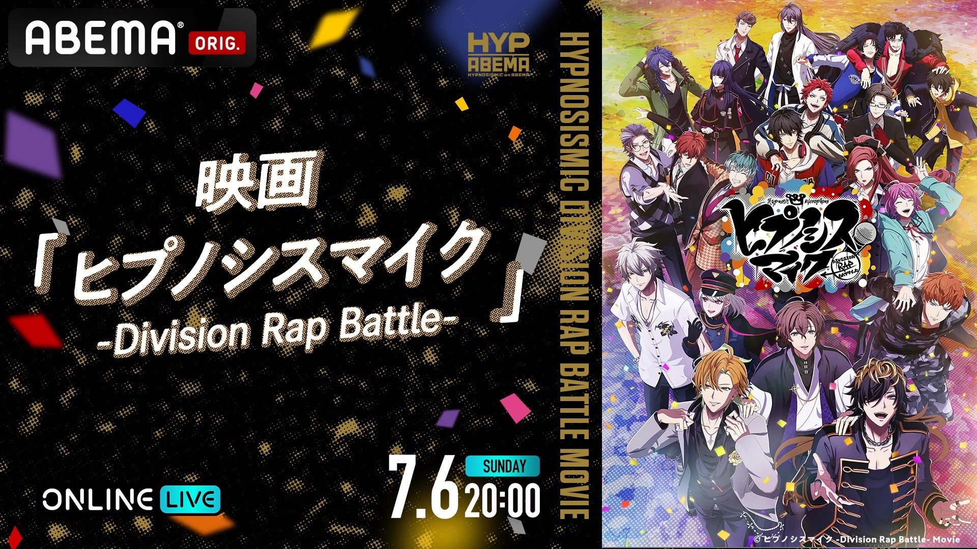 新しい未来のテレビ「ABEMA」は、現在大ヒット上映中の『ヒプノシスマイク -Division Rap Battle-』(以下『ヒプノシスマイク』)初の映画『ヒプノシスマイク –Division Rap Battle-』を、「ABEMA PPV(アベマ ペイパービュー)」にて、独占初放送することをお知らせいたします。