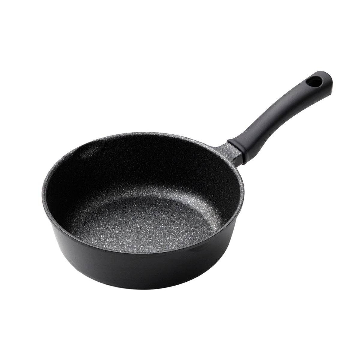 また、注ぎ口を備えた形状により、ソースや煮汁を器に移す際もスムーズに行えます。握りやすさに配慮したソフトグリップハンドルを採用し、調理中の安定感と持ちやすさを両立しています。