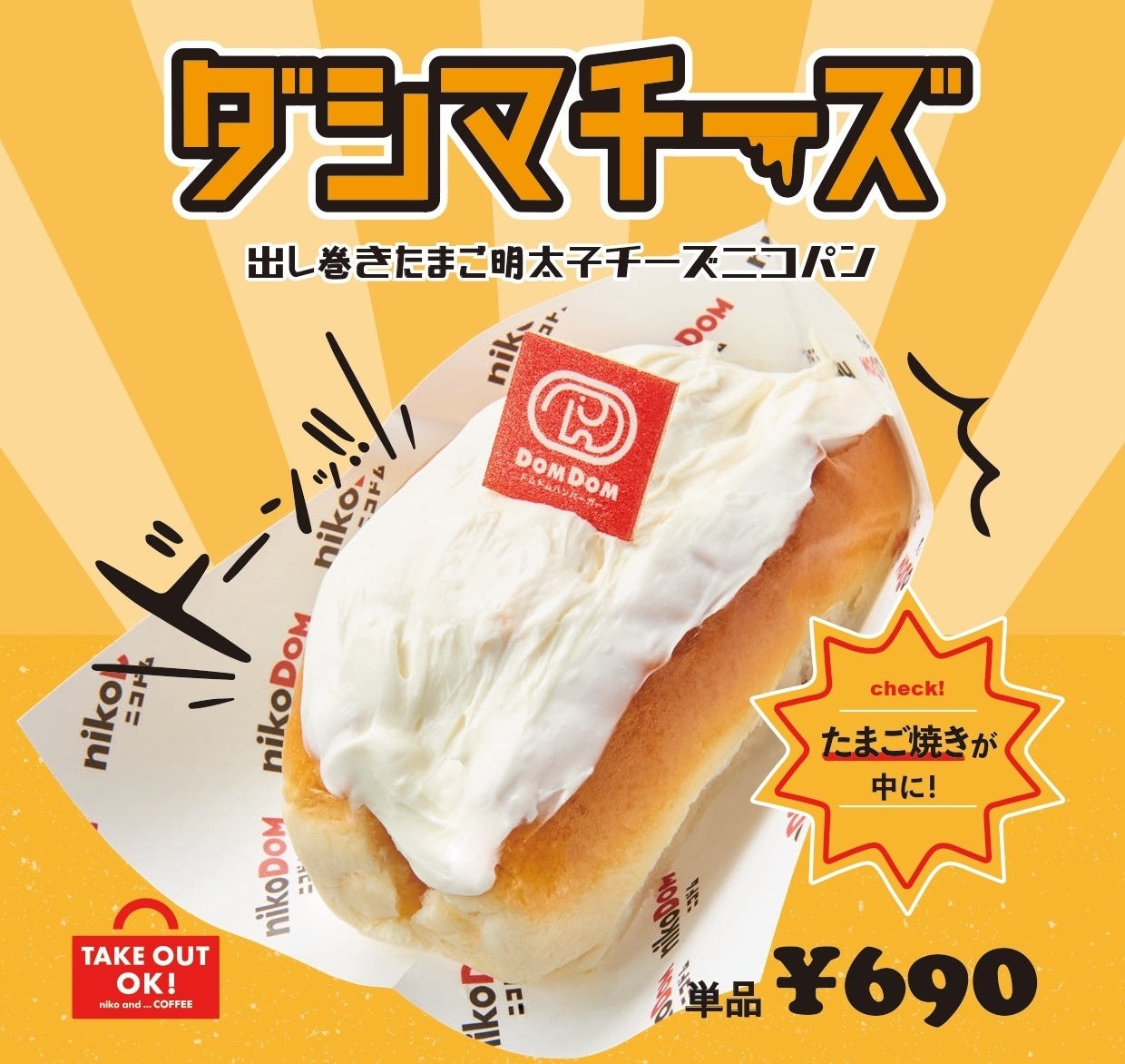 コラボメニュー開発に際して、アイディアをお客さまからSNSで募集いたしました。本メニューは、ドムドムハンバーガーを代表するヒットメニューである厚焼きたまごをniko and ... COFFEEの看板メニューであるニコパンでサンドしたものに、インパクト抜群の伸びるチーズソースをふんだんにかけたものをベースに、それに合うトッピングを募集したところ170のアイディアが集まり、明太子に決定しました。