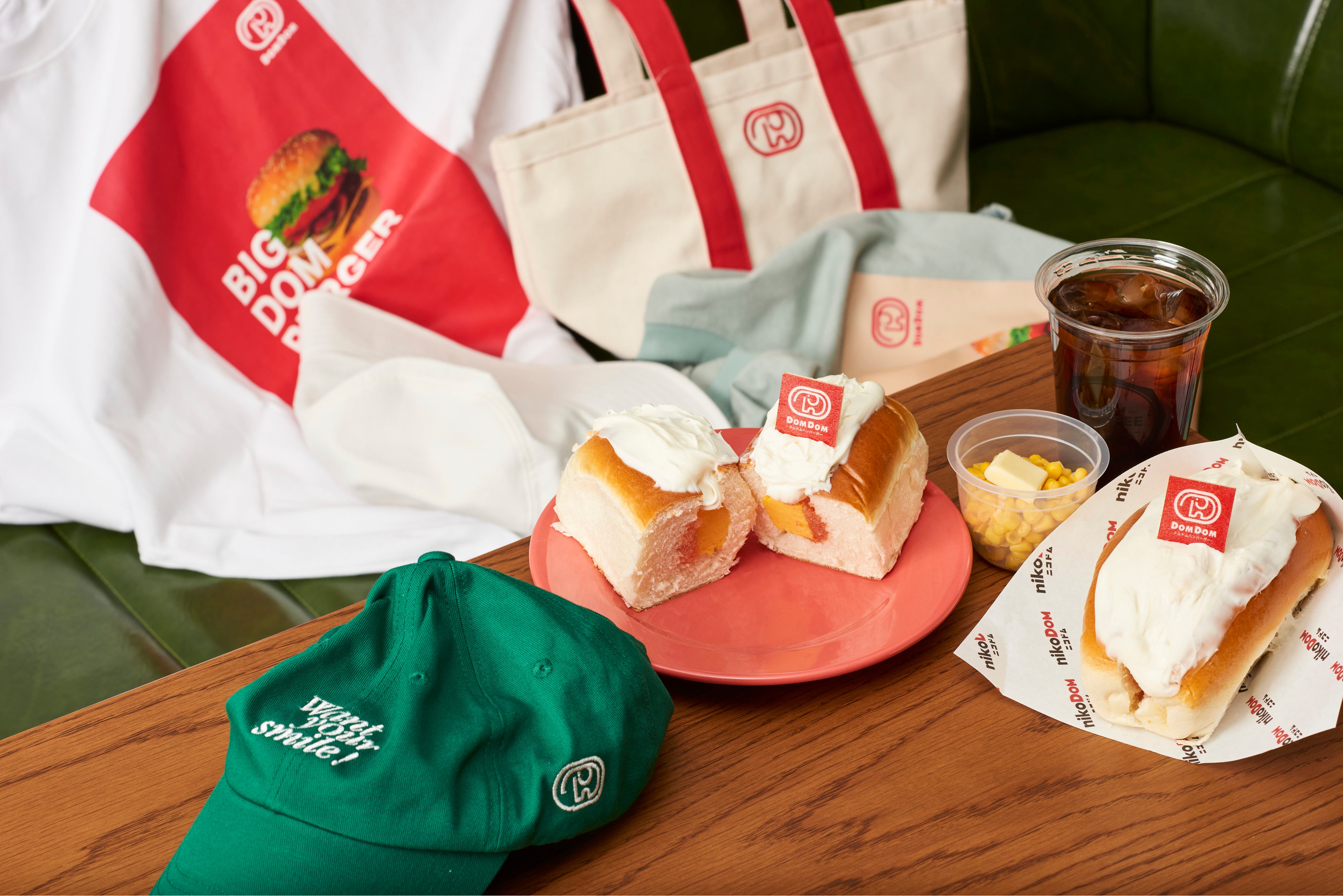 niko and ...とドムドムハンバーガーのオリジナルコラボレーションブランド「nikoDOM(ニコドム)」は、「行こう!食べよう!着てみよう!」をキャッチフレーズに、ハンバーガーやアパレルのコラボレーションを期間限定で展開しています。