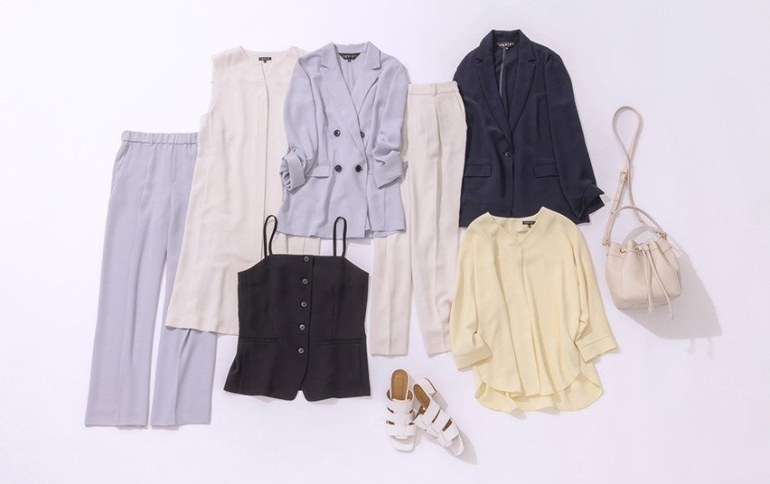 通勤に活躍するジャケットやジレ、ブラウス、パンツの他、オフにも着回しが効くキャミソールなど充実したラインナップの『着る日傘』シリーズを是非ご覧ください。
