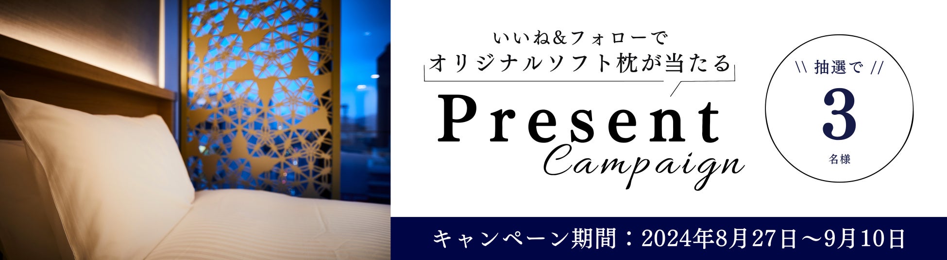 「All For Tomorrow ~『最高の朝』をお届けするホテル~」をコンセプトに、全国5拠点に展開している価値体験型ホテル「インターゲートホテルズ」では、お客様に最高の朝をお迎えいただくため、お部屋の快適性はもちろん、ルームウエアやマットレスなどの寝具にこだわり、「安眠」を超えた「快眠」をサポートしております。今回は、ホテルこだわりの寝具をご自宅でも体験していただきたいという想いから、好評のオリジナル枕「INTERGATE PILLOW」を抽選で3名様にプレゼントいたします。インターゲートホテルズの公式インスタグラム(@intergate_hotels)をフォローし、キャンペーン対象投稿に「いいね!」していただくと応募が完了。応募期間は、健康睡眠週間となる8月27日(火)~9月10日(火)まで実施いたします。ぜひこの機会にご応募ください。