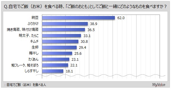 ご飯のおともとして食べるものや食べる場面などについて聞いています。調査結果をお知らせします。