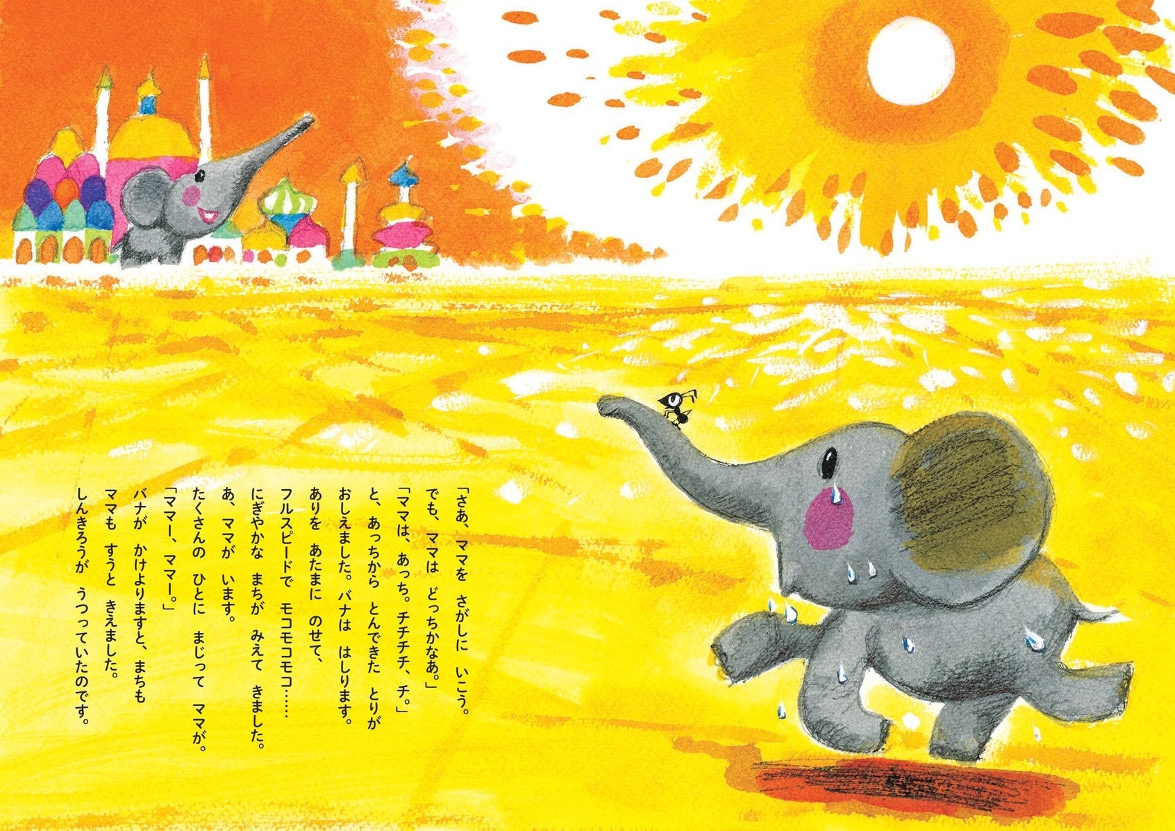- バナは ゆうきを だして モッコ モッコ わたります。むこうで ママが まっていそうだからです。 ──『ぞうのこバナ』より