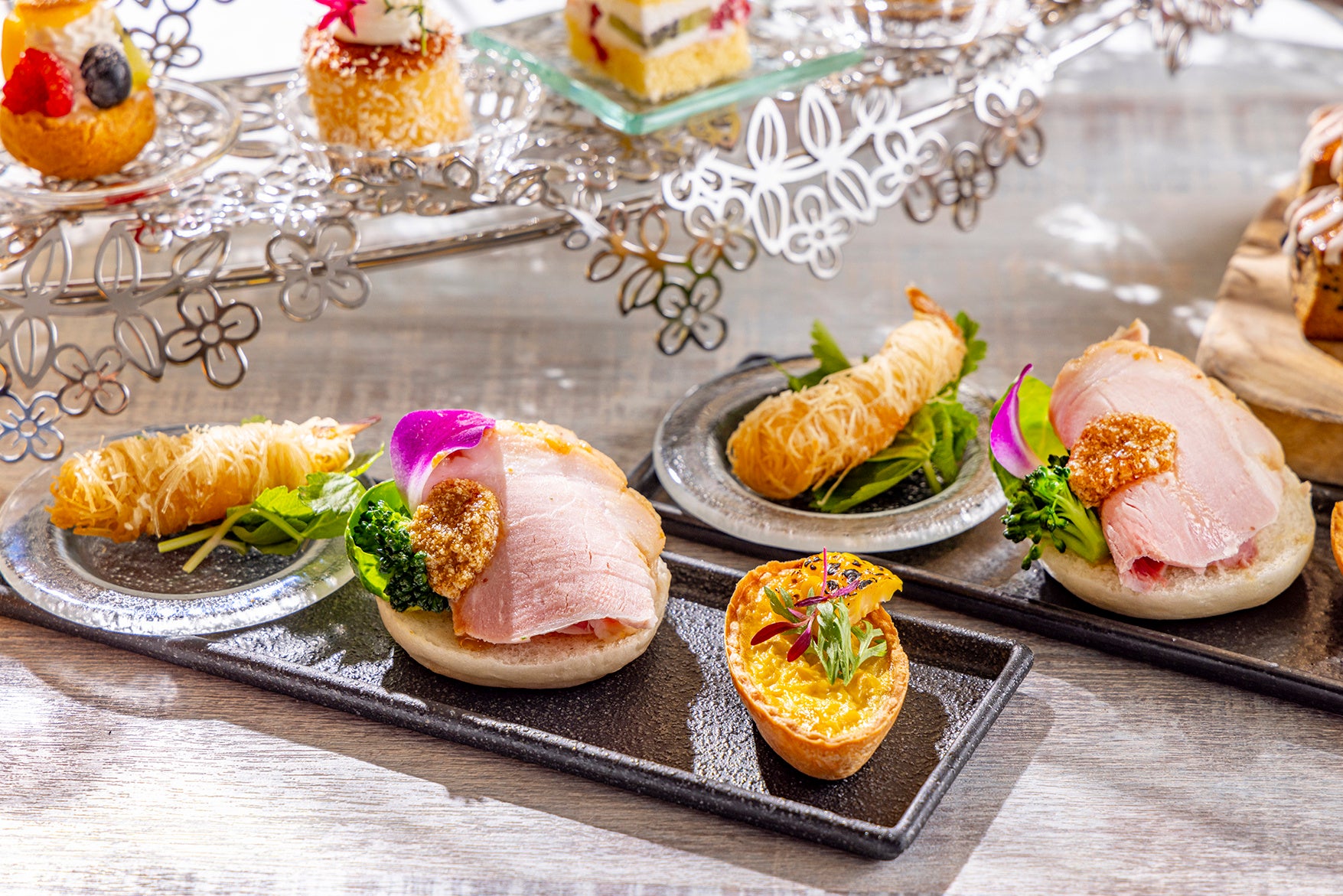 本フェアでは、ココナッツやマンゴー、パッションフルーツなど、ハワイの風を感じさせるスイーツの数々をご用意しました。ハワイでは「リリコイ」といわれるパッションフルーツは酸味との相性が良いチョコレートと合わせたタルトでお楽しみいただけます。また、ココナッツは、ほろ苦いキャラメルと合わせた濃厚な味わいに仕上げました。そのほか甘みの強いマンゴーはココナッツが香るスープ仕立てと、果肉とふんわりと軽いクリームをスポンジで挟んだショートケーキをご用意しました。そのほかマスタードとキャラメルの風味が合わさり食欲をそそるジャンボンブランや極細のパスタ「カダイフ」で包んだガーリックシュリンプなど1つ1つにこだわりが詰まったセイボリーもご堪能ください。また、サンドイッチとスコーンはワゴンサービスでご提供いたします。スコーンはバターがリッチに香るプレーンスコーンとコーヒーの風味にチョコチップがアクセントになったスコーン2種、サンドイッチも味わいや食感の異なる4種を好きなだけお召しあがりいただけます。