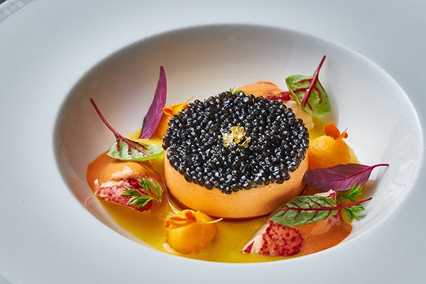 ・カナダ産オマール海老とキャビア ポワブロンルージュのコンポジション マンゴーのソース