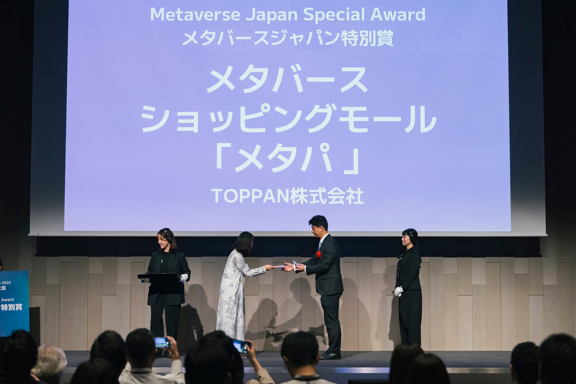 TOPPANホールディングスのグループ会社であるTOPPAN株式会社(本社:東京都文京区、代表取締役社長:齊藤 昌典、以下 TOPPAN)は、複数のバーチャル店舗を集約したメタバースモールサービス「メタパ®」を、2021年12月より提供しています。このたび、一般社団法人Metaverse Japan(代表理事:長田 新子、馬渕 邦美、以下MVJ)が主催する「JAPAN Metaverse Awards 2024」において、「メタパ®」が評価され、Metaverse Japan Special Award / メタバースジャパン特別賞を受賞しました。