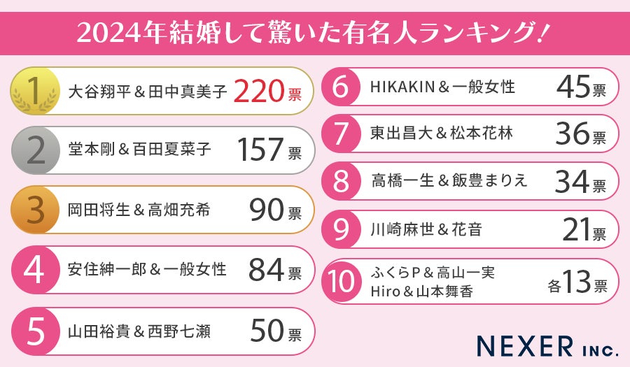【男女1000人に聞いた】2024年結婚して驚いた有名人ランキング!
