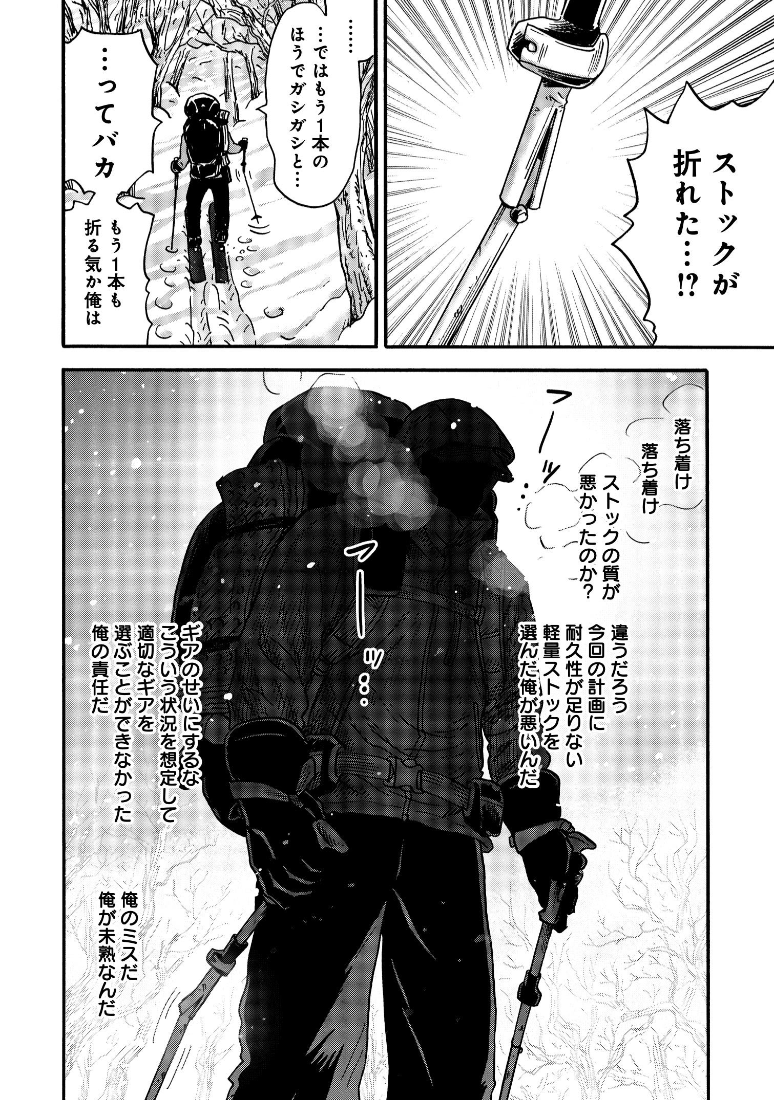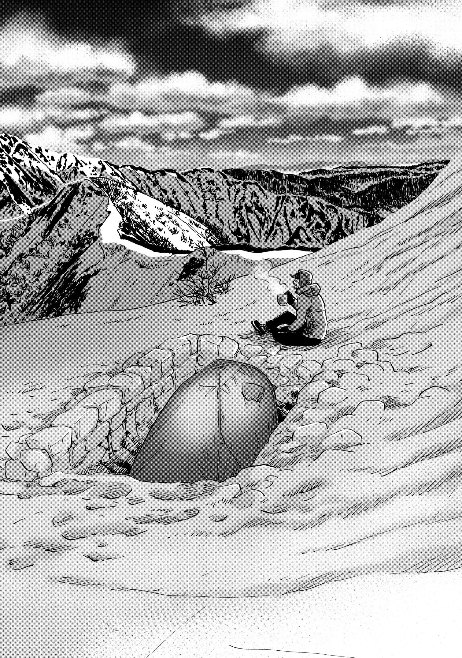 第1話は『山と食欲と私』原作者の信濃川日出雄先生自らが執筆、登山家の野村良太氏をモデル・監修に迎え、「積雪期単独北海道分水嶺縦断」の大冒険が見事な筆致で描写されています。