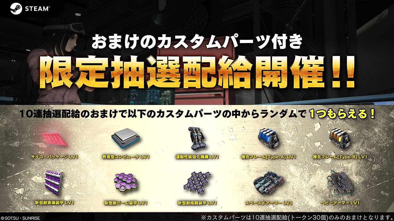 10連抽選配給のおまけでカスタムパーツがついてくる