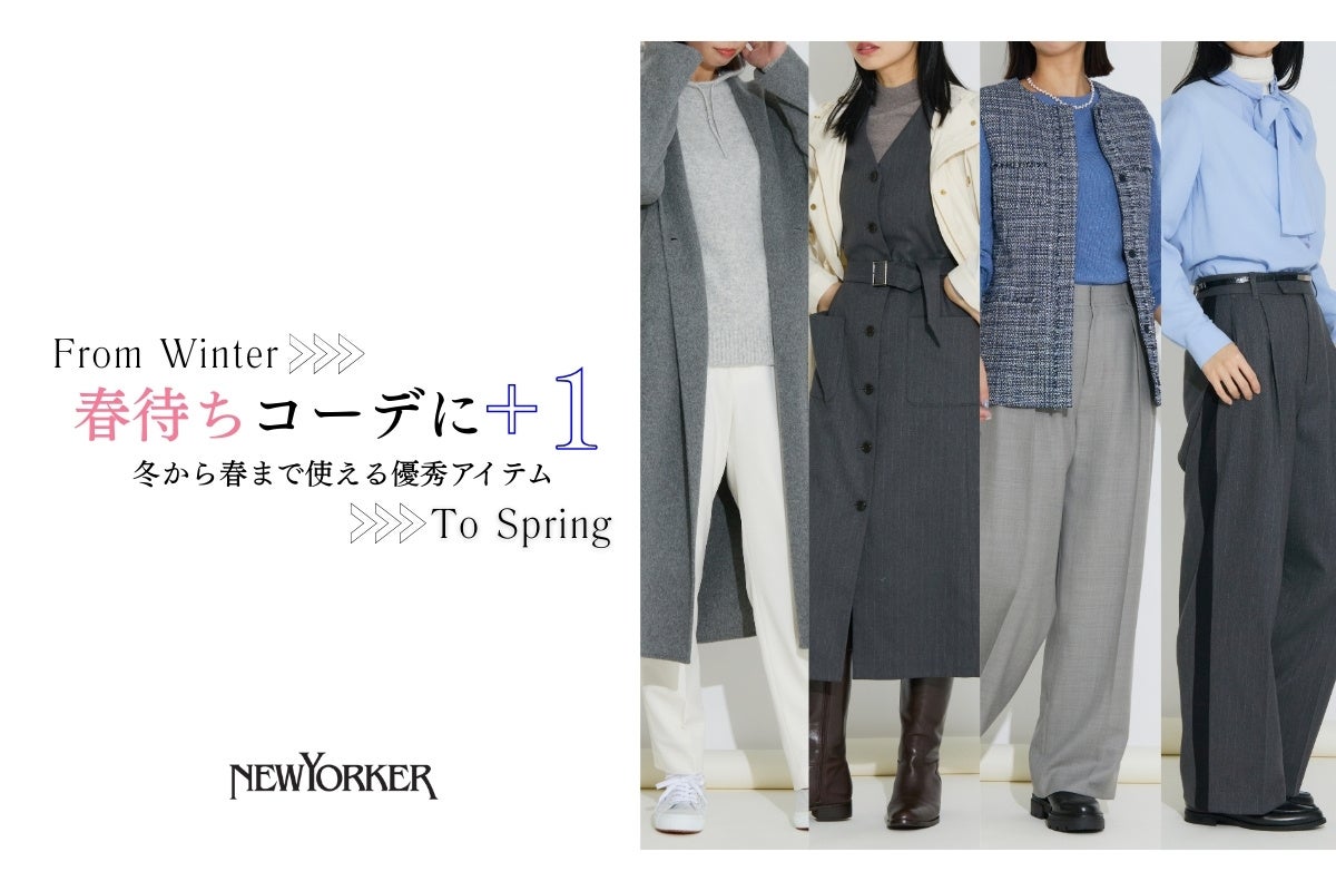 ニューヨーカー ウィメンズ「From Winter To Spring 春待ちコーデに+1 冬から春まで使える優秀アイテム」の特集コンテンツを公開。