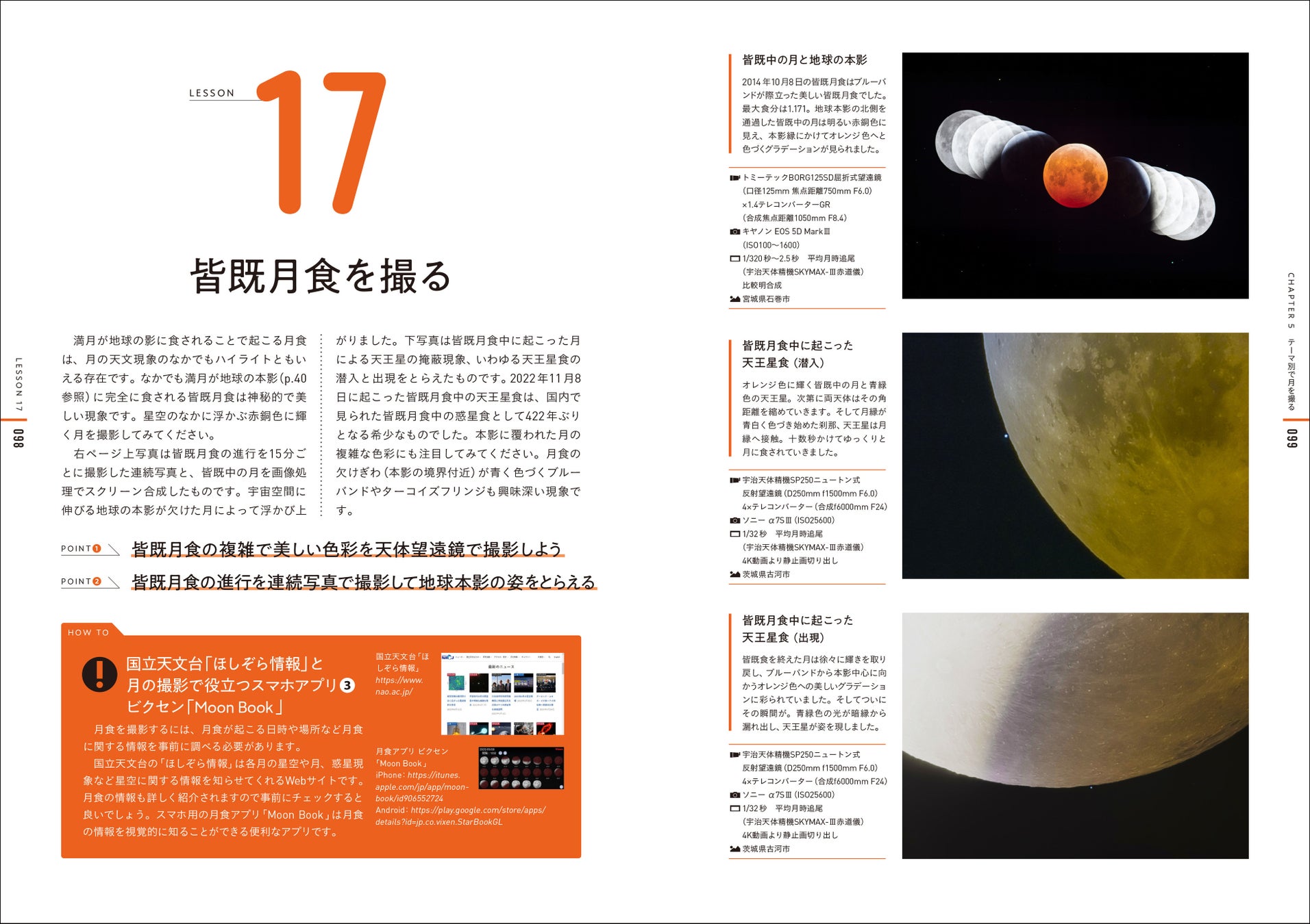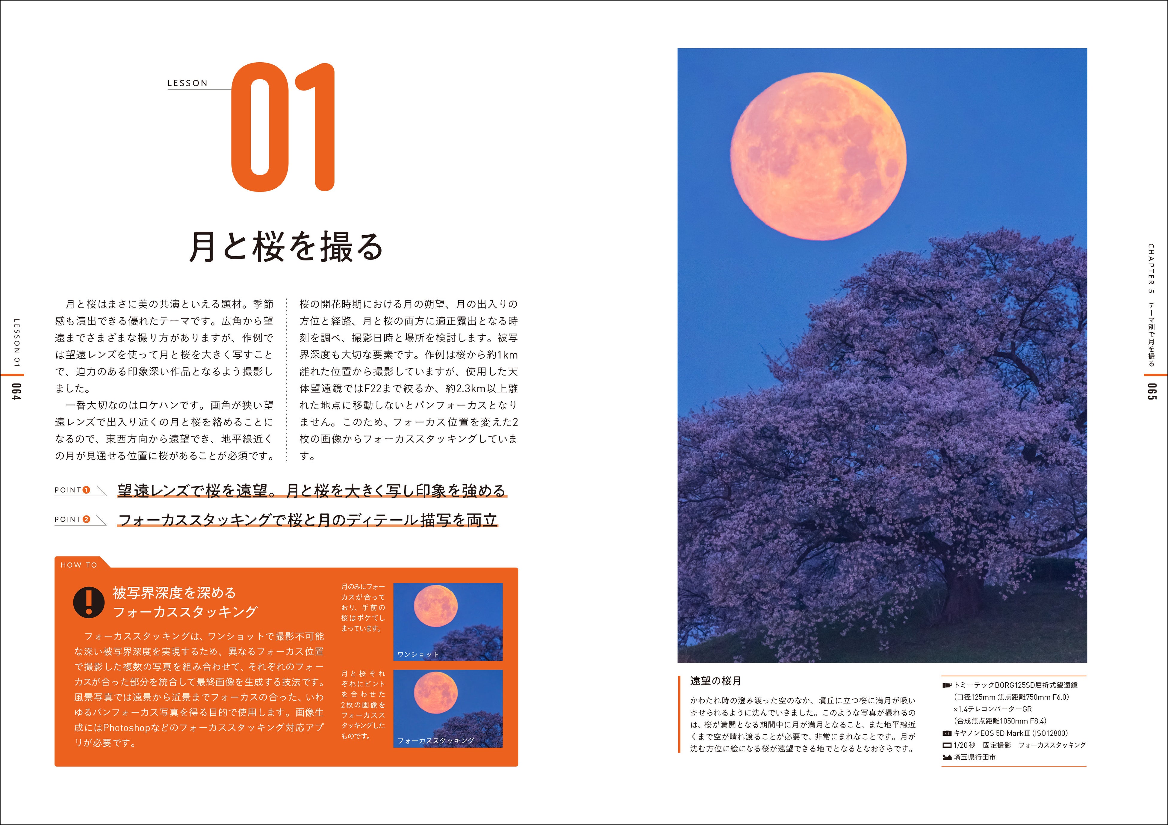 月の満ち欠け、星食、月食などの天文現象と、季節と共に移り替わる月のある風景の撮り方がわかる!