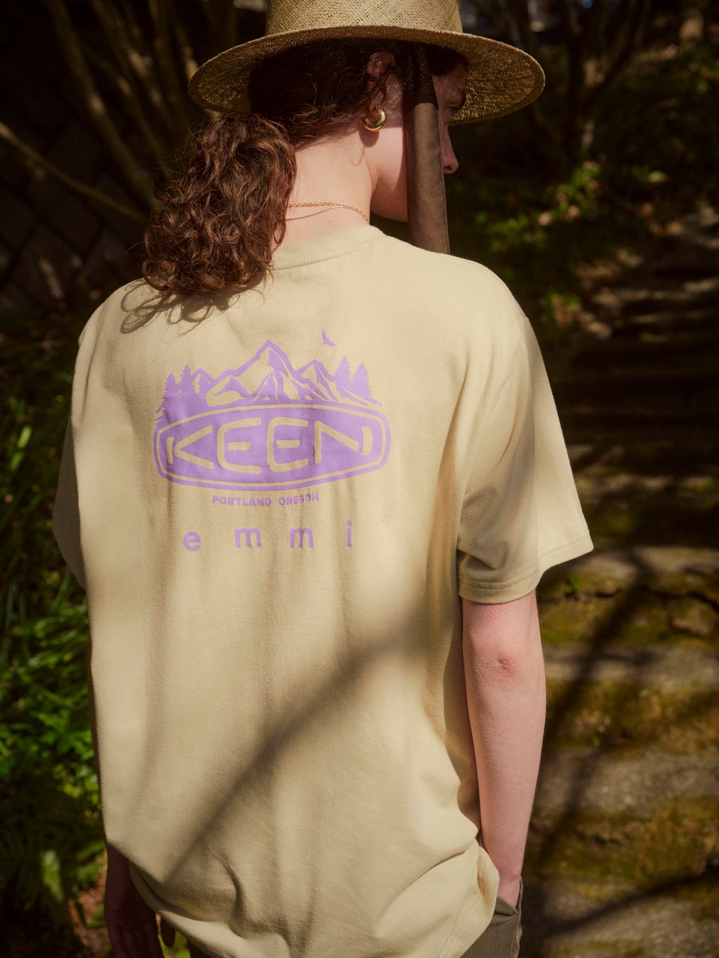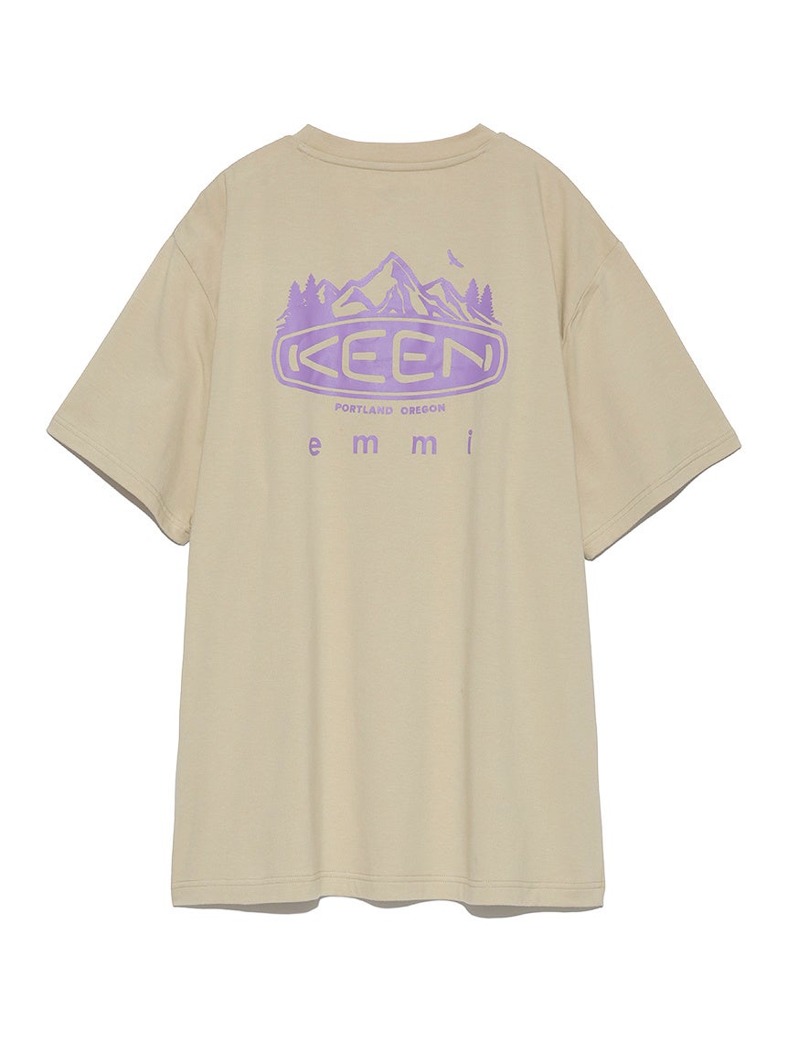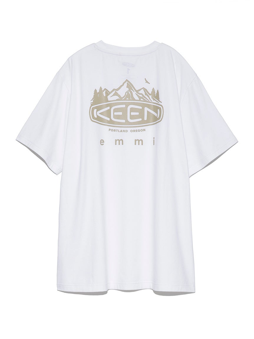 KEENロゴが目を引くマウンテンのバックプリントに、さりげなくemmiのネームが施された特別仕様。