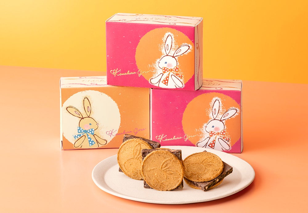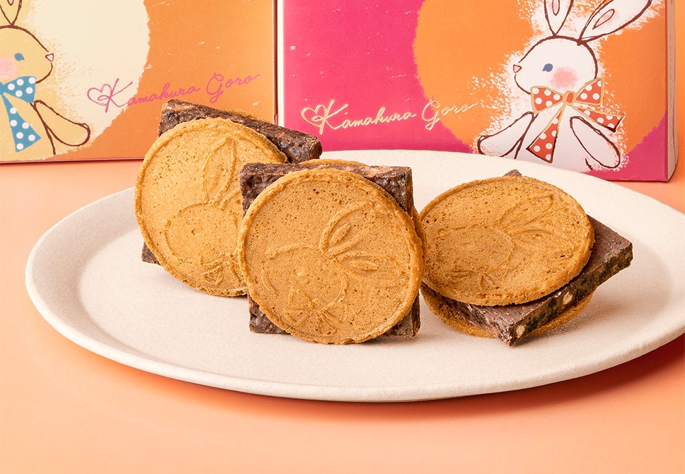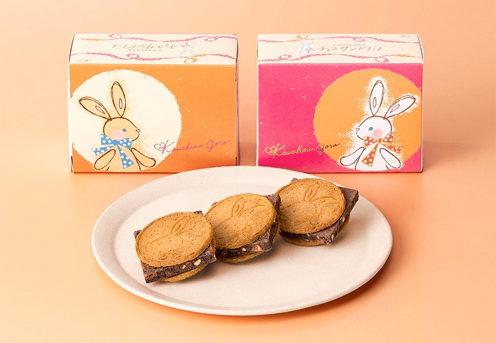 香ばしいビスケットと粗挽き煎り大豆をざくざく盛り込んだ厚切りショコラを、満月になった「半月」生地ではさんだ『鎌倉チョコサンドだょ』。しゃりしゃり食感がたまらない「鎌倉五郎本店」で人気のショコラサンドです。そんな『鎌倉チョコサンドだょ』から、ブランドのシンボル“月うさぎ”がとってもかわいい、華やかなパッケージが新登場!ぜひこの機会にゲットしてみてくださいね。