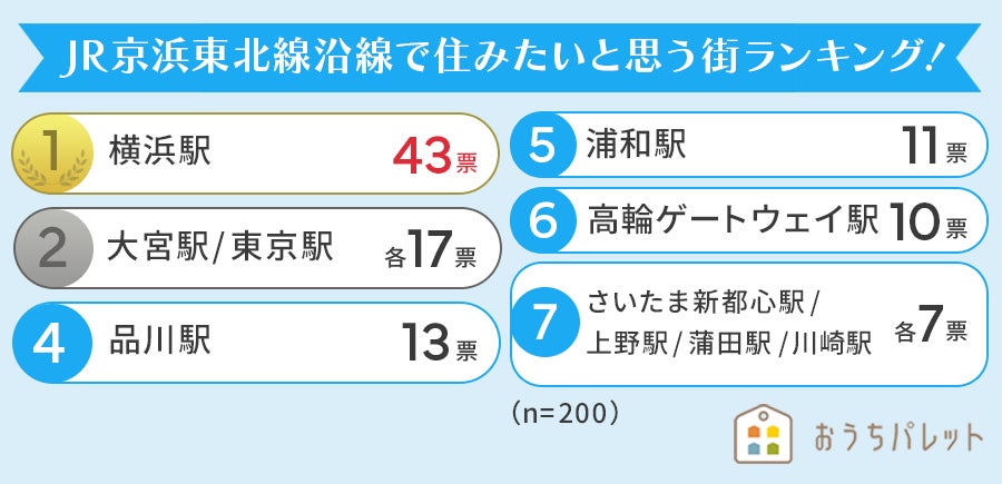おうちパレット・女性が選ぶJR京浜東北線沿線の住みたい街に関する調査