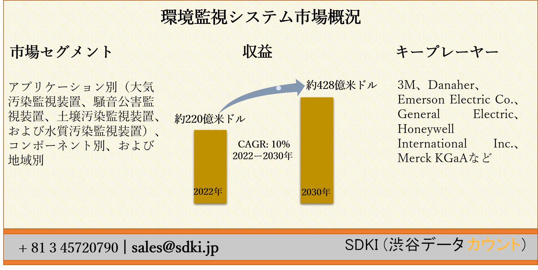 SDKI Inc.は、環境監視システム市場の新レポートを2021年12月21日に発刊しました。この調査には、環境監視システム市場の成長に必要な統計的および分析的アプローチが含まれています。レポートで提供される主要な産業の洞察は、市場の既存のシナリオに関する読者に市場の概要についてのより良いアイデアを提供します。さらに、レポートには、市場の成長に関連する現在および将来の市場動向に関する詳細な議論が含まれています。