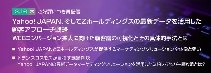 【トランスコスモスオンラインセミナー】<ご好評につき再配信>Yahoo! JAPAN、そしてZホールディングスの最新データを活用した顧客アプローチ戦略を3/16(木)に開催