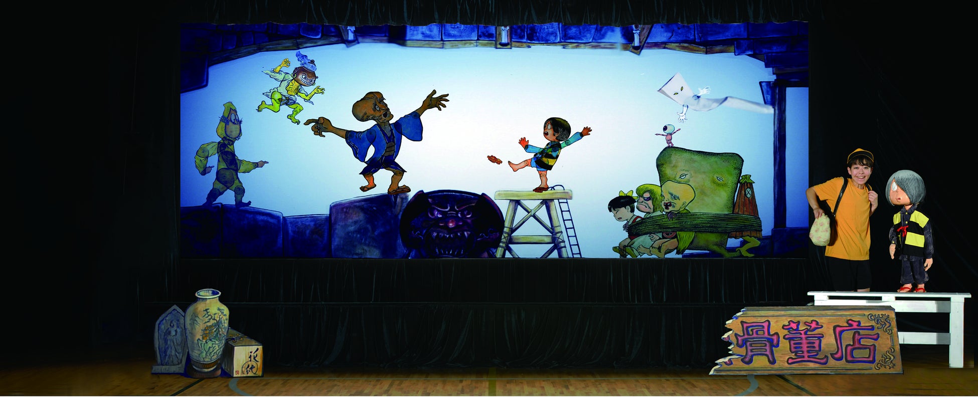 妖怪世界にぴったりの「飛ぶ、消える、変わる」魔法の芸術と呼ばれる中国影絵「皮影戯」(ピーインシー)で製作上演。唯一日本で常駐し、ユネスコ無形文化遺産「中国伝統影絵・皮影戯」を製作する美術家が水木プロダクションの協力を得て妖怪影絵人形劇を製作しました。