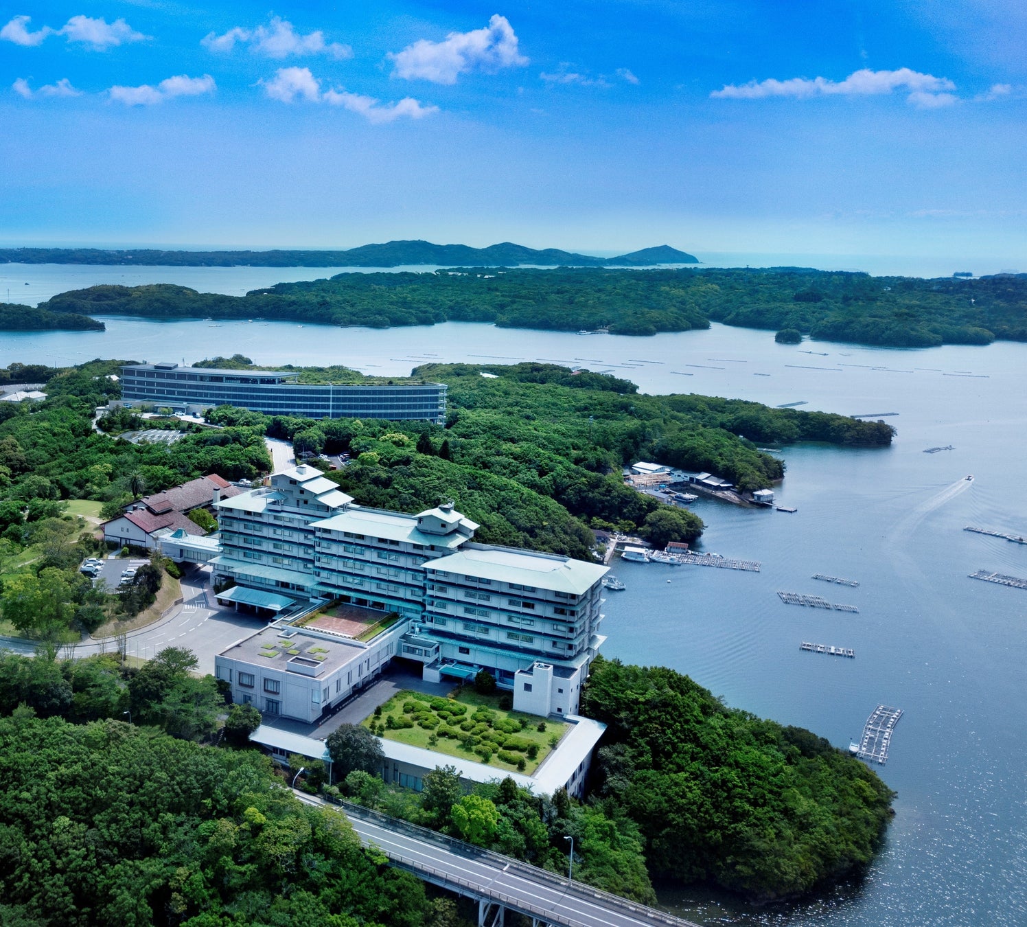 三重県の志摩半島南部、美しいリアス海岸や大小さまざまの島を有し、伊勢志摩国立公園の自然豊かな賢島にあり、穏やかな英虞湾の海と森に抱かれたラグジュアリーリゾートです。約9万平米の広大な敷地と多彩なアクティビティでご滞在を彩るひとときを提供しています。また、館内にはご宿泊のすべてのお客様にご利用頂ける「ゲストラウンジ」や2016年に開催された「G7伊勢志摩サミット」の展示エリア、ホテルの歴史をご紹介するコーナーを備えています。また、4つのレストランとカフェを備えており、「海の幸フランス料理」に代表される豊穣の海の恵みと三重の美食をフレンチ、和食、鉄板焼き、カフェと様々なスタイルでお楽しみいただけます。英虞湾に沈む夕景はリアス海岸に浮かぶ島々、名産でもある真珠養殖の筏が織り成すシルエットが神秘的な光景は「日本の原風景」とも称されています。温かなおもてなしとともにこの地ならではのゆるやかな時の流れ-志摩時間-をお過ごしください。