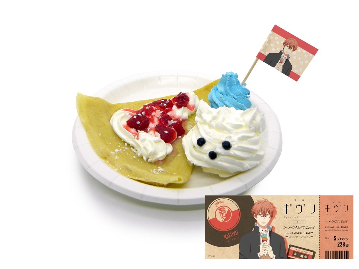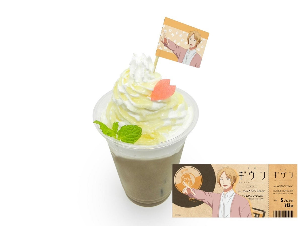 『映画 ギヴン 海へ』に登場するキャラクターをモチーフにしたデザート&フードを販売します。対象メニューには各メニューにひもづいた絵柄の「ライブチケット風イラストシート」(全8種)がセットで1枚付きます。