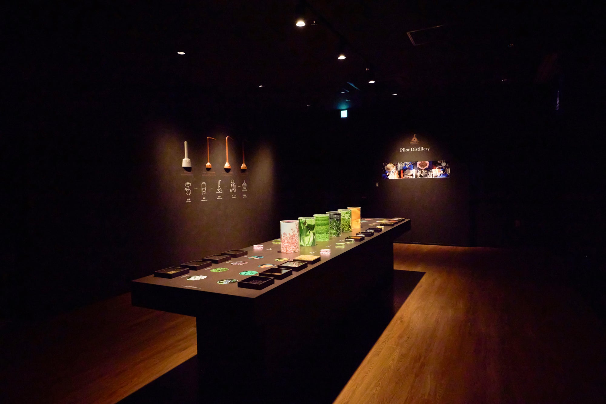 「スピリッツ・リキュール工房」1階の「クリエイションルーム」では、360度囲まれたスクリーンに映し出される演出の中で、普段味わうことのできない「ROKU〈六〉」の原料酒テイスティングなどを通じて、旬の素材へのこだわりや、多彩な原料酒をつくり分け、ブレンドして生まれた「ROKU〈六〉」の味わいを体感いただきます。