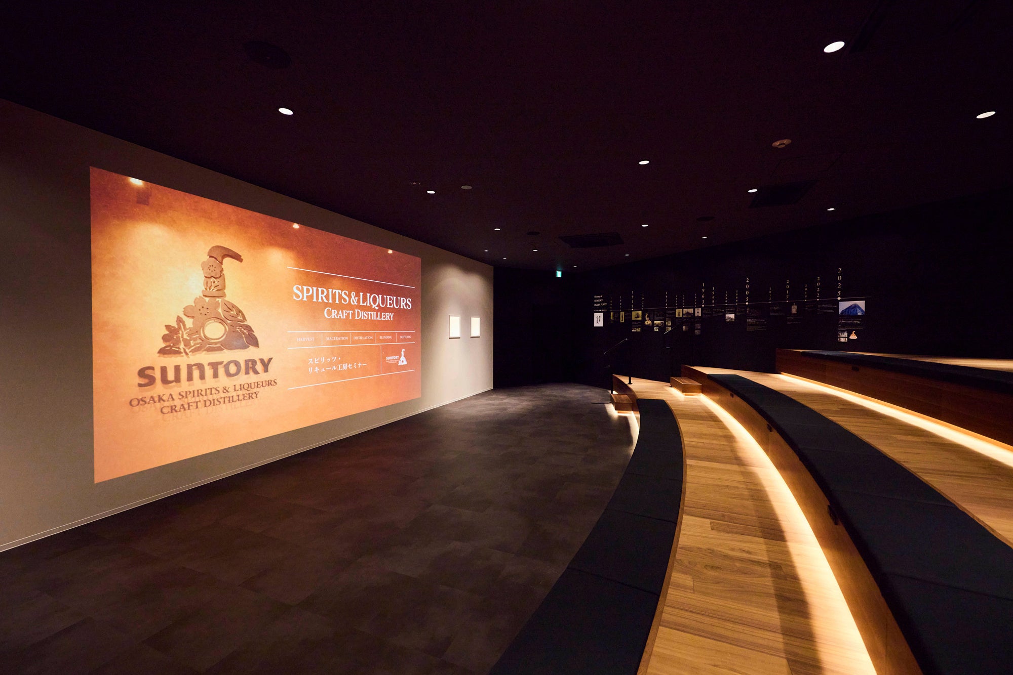 今回新設した「はじまりのラウンジ」では、サントリー大阪工場の歴史や創業者・鳥井信治郎の思いを没入感のある巨大スクリーンでご覧いただき、「スピリッツ・リキュール工房」でつくられているさまざまな製品をご紹介します。