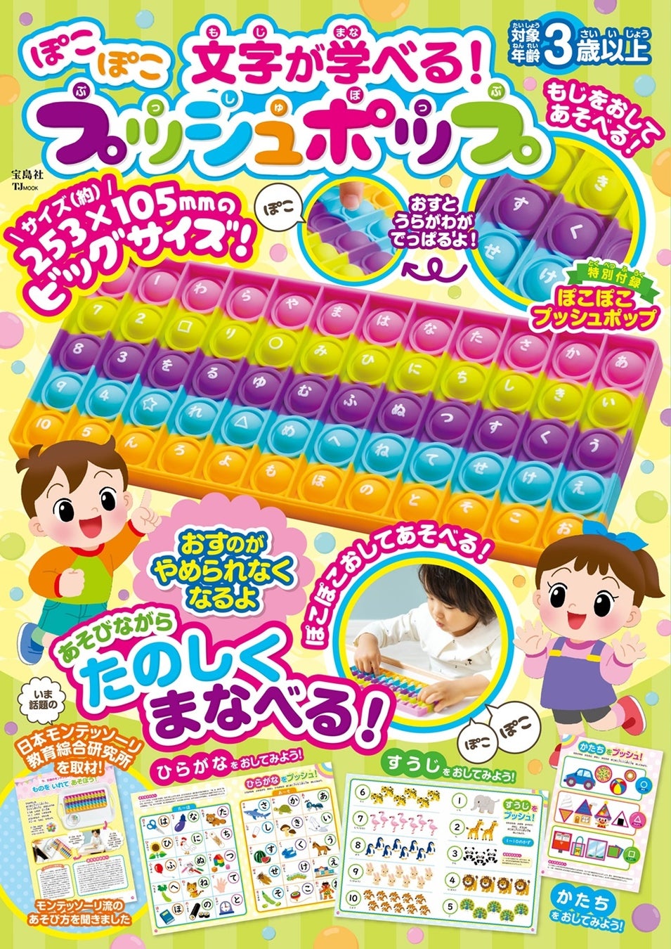 知育玩具としても注目されている「プッシュポップ」が付録についた『文字が学べる! ぽこぽこプッシュポップ』を6月30日に宝島社より発売します。