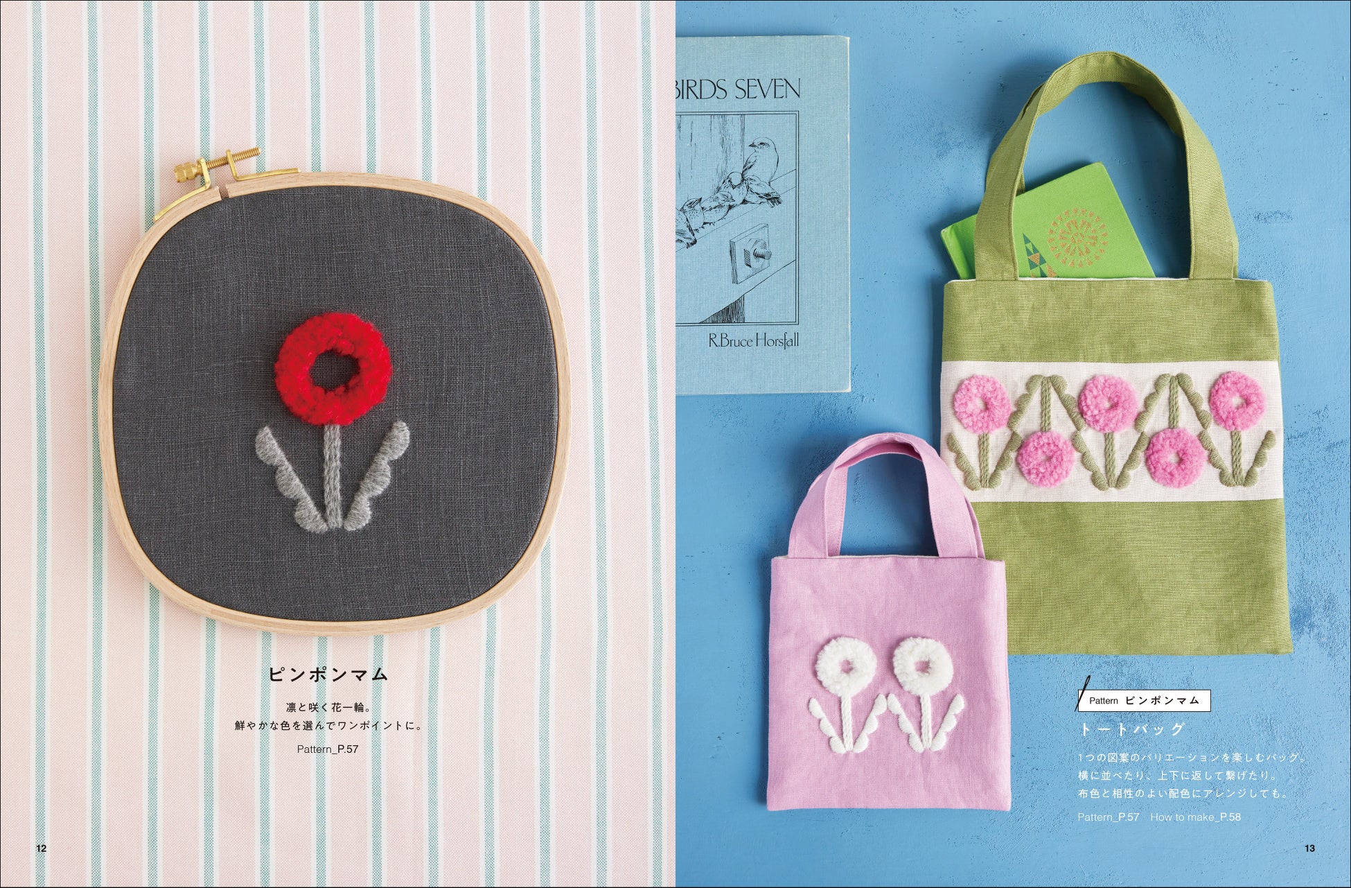 手編み用の毛糸で刺繍をする、あたたかくふかふかな刺繍の図案と作品集。