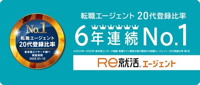 「Re就活エージェント」が、20代登録比率6年連続No.1を獲得
