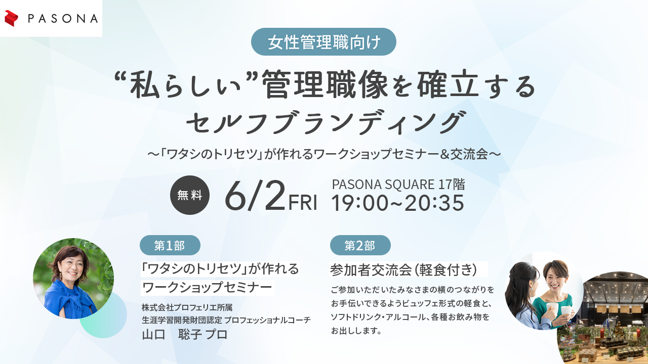 パソナ 女性管理職向けイベント 東京・南青山で6月2日開催『“私らしい”管理職像を確立するセルフブランディング』