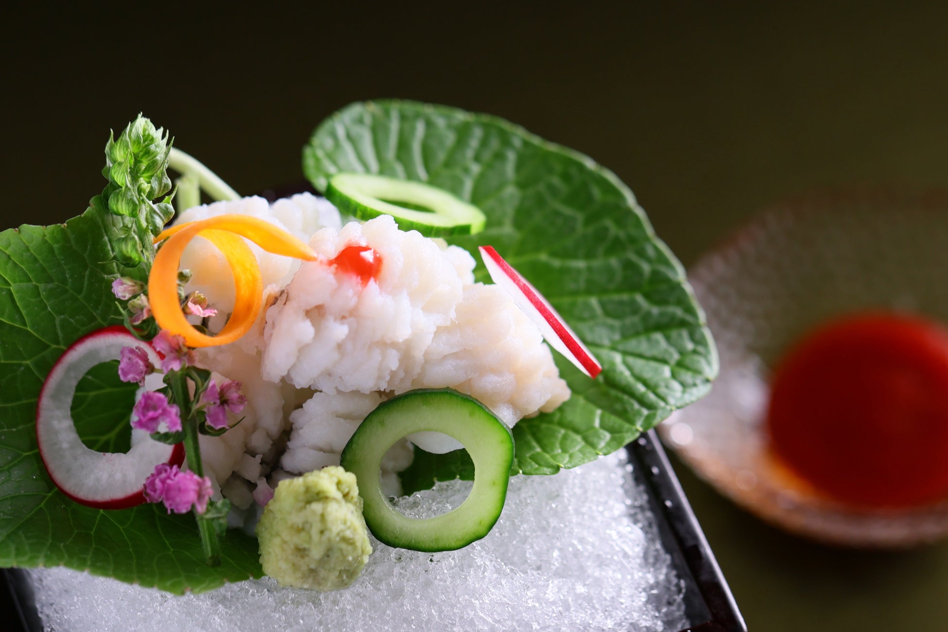 鱧は産卵を控えた初夏が最も美味しい季節。柔らかな身を梅肉でさっぱりとお召し上がりください。