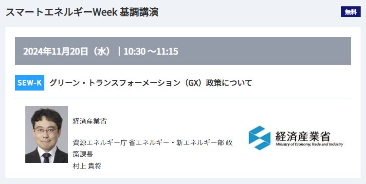 ●スマートエネルギーWeek【関西】 基調講演【SEW-K】に