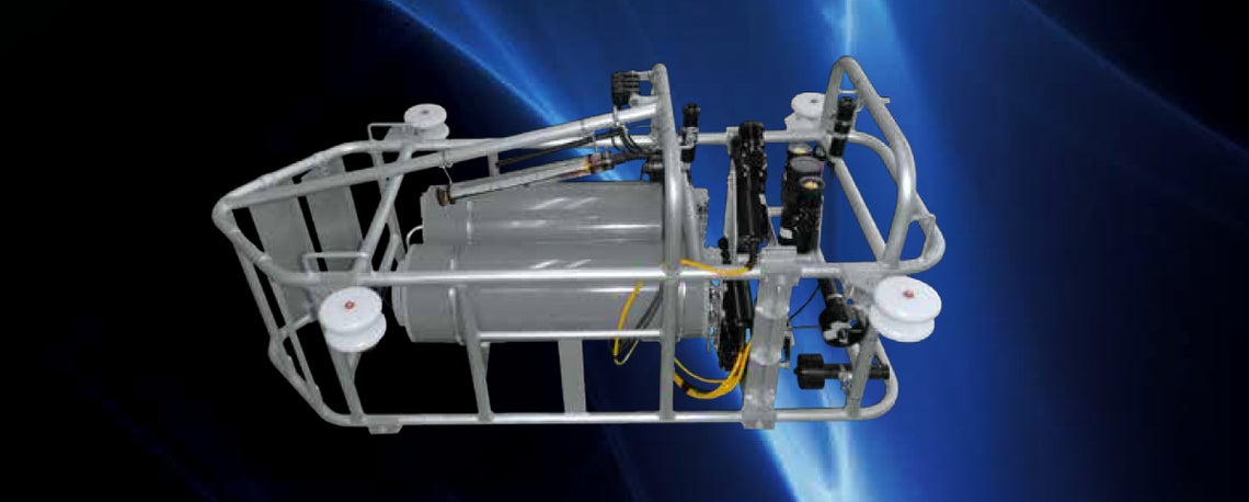 新開発の水面ドローンで水力発電所導水路の内部を点検 5台のカメラにより、通水中の水路・トンネルの水中部と気中部を同時に撮影します。(左右片側半分ずつ) 自然流下を利用して推進するため、水路停止を必要としません。