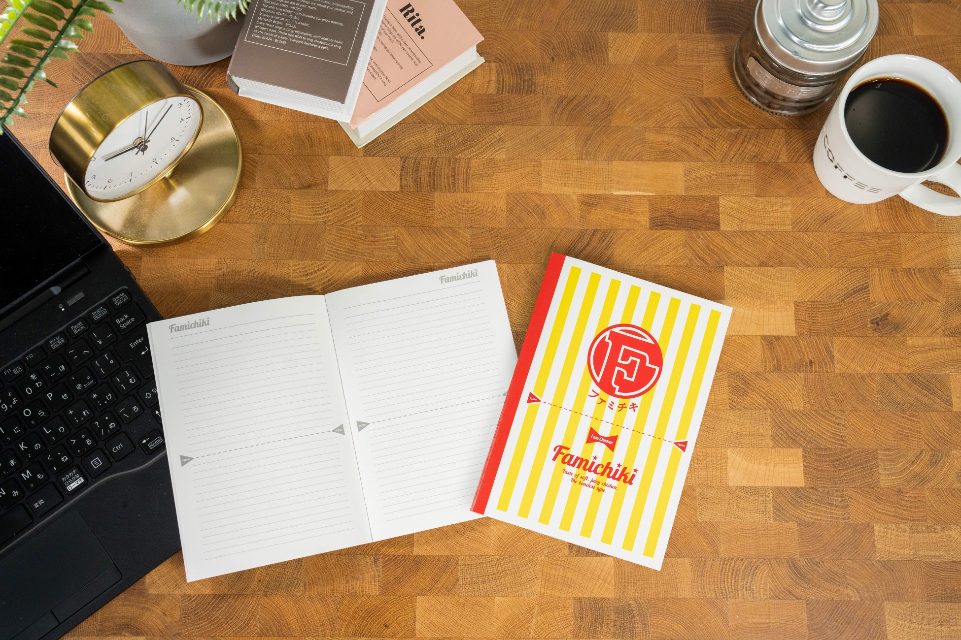 【内容】表紙だけでなく、中身にも切り取り線のデザインが入っているファミチキ袋デザインのノートです。ファミチキを食べた個数を記録するなど、使い方はあなた次第です!