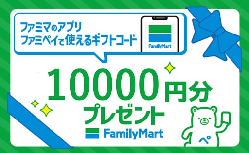 ファミマのアプリ「ファミペイ」で、「ファミペイギフトカード」に印刷されている二次元コードを読み込む、もしくは印字されているギフトコードを入力することで、ファミペイ残高に10,000円相当のファミマポイントがチャージされます。