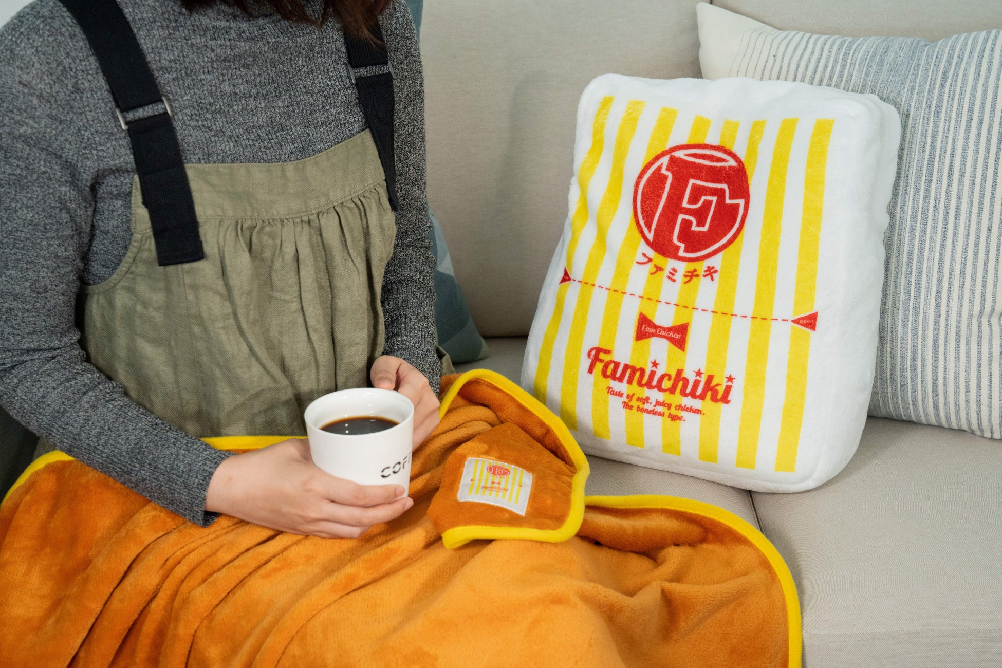 【内容】ファミチキ袋デザインのクッションケースの中に、ふわふわな触り心地のファミチキカラーのブランケットが入ったアイテムです。ファミチキのブランケットはファミチキ袋のクッションケースにしまうことで、クッションとブランケットの2WAYで楽しめます。